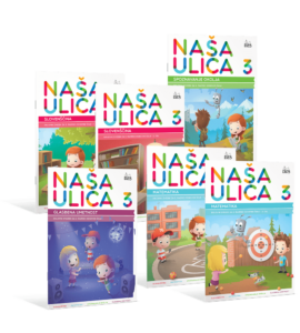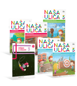 Naša ulica je sodobno učno gradivo, ki učitelju ponuja celostno podporo pri načrtovanju in izvajanju pouka, učencu pa pomaga pri rednem učenju in utrjevanju snovi. Bogato opremljena gradiva vsebujejo ogromno vaj in raznovrstno slikovno gradivo. Posebnost Naše ulice so naši štirje junaki – Mila, Brin, Julija in Svit –, ki skupaj z učenci rastejo in jih spremljajo skozi prva tri leta šolanja. Nato jih skupaj z učenci pospremijo v 4. razred, kjer še naprej raziskujejo in odkrivajo nova znanja v gradivih Naše zgodbe. Tako rdeča nit nenehne rasti in povezanosti učence spremlja skozi prvih pet razredov – za navdihujočo, spodbudno in nepozabno učno izkušnjo!