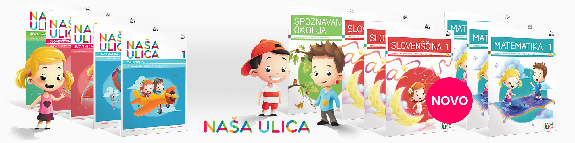 NOVOST! Z novim šolskim letom prihajajo PRENOVLJENI DELOVNI ZVEZKI ZA 1. RAZRED v sklopu gradiv Naša ulica. Prenovljena gradiva so zasnovana posebej za prvošolce in upoštevajo sodobne pristope k opismenjevanju ter učenju osnov matematike in slovenščine.
