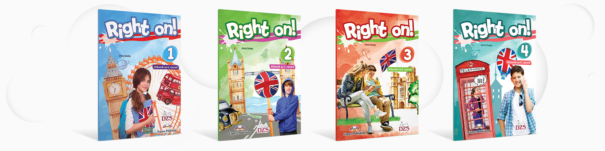 V sodelovanju z založbo Express Publishing in s slovenskimi učitelji angleškega jezika vam predstavljamo učbeniško serijo Right on!, ki je namenjena poučevanju angleščine od 6. do 9. razreda osnovne šole. Serija prinaša svežino, bogato vsebino in sodobno interaktivno podporo.