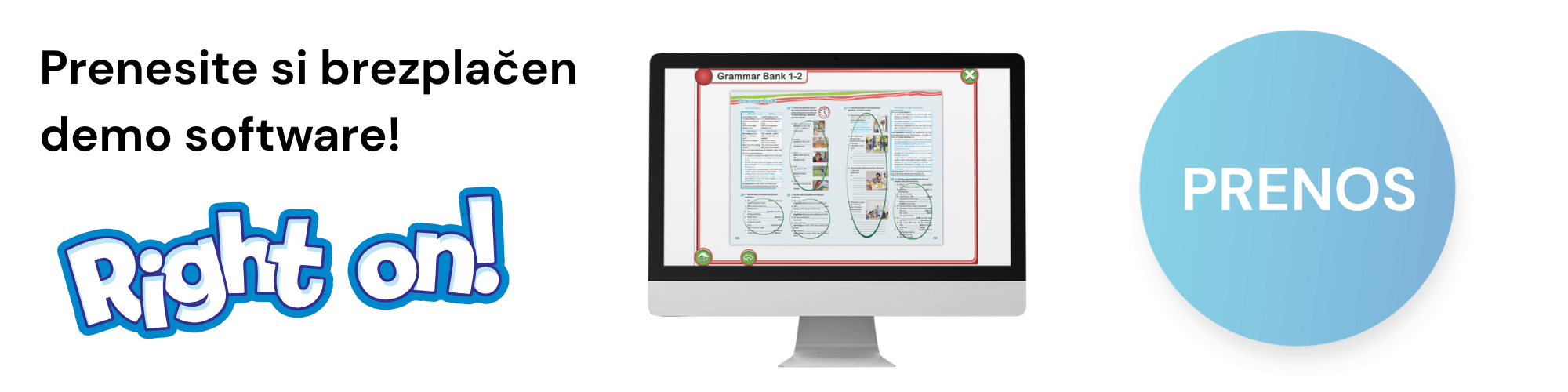 Vljudno vabljeni, da si prenesete brezplačno demo interaktivno gradivo za Right on! 1 in 2. Prenos lahko opravite s klikom na gumb spodaj.