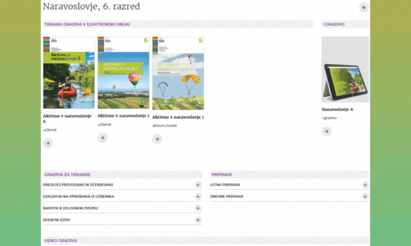 Na voljo je letna priprava (trenutno še za staro verzijo), dnevne priprave (trenutno še za staro verzijo), dodatni izzivi v obliki delovnih listov, rešitve delovnega zvezka, na voljo bodo tudi rešitve nalog na koncu poglavij v učbeniku, kratki testi za posamezna poglavja.