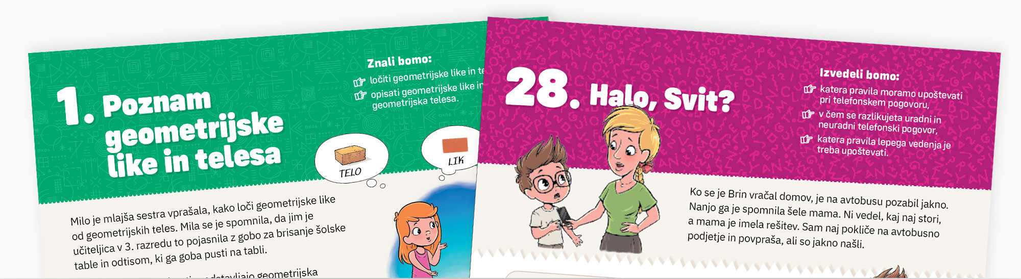 Uvodne motivacijske zgodbe povezujejo matematiko in slovenščino z resničnim življenjem učencev ter spodbujajo pozitiven odnos do učenja.