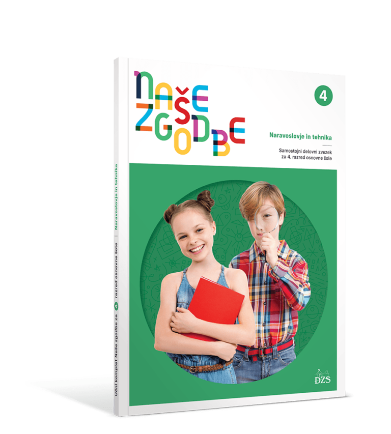 Naravoslovje in tehnika, Naše zgodbe 4 je sodoben samostojni delovni zvezek, zasnovan na uvodnih motivacijskih zgodbah štirih junakov Mile, Julije, Brina in Svita, ki učence spodbujajo k raziskovanju naravnih pojavov. Vsaka učna enota se prične s kratko zgodbo iz vsakdanjega življenja kot izhodišče za uvod v novo snov. Gradivo vključuje preproste poskuse s pripomočki iz domače kuhinje, bogato slikovno gradivo ter kratke razlage z nalogami za kritično in ustvarjalno mišljenje. Na začetku vsake enote so jasno opredeljeni učni cilji. Samostojni delovni zvezek je obogaten z 21 interaktivnimi nalogami in 8 avtorskimi video vsebinami, ki postopno razvijajo digitalne kompetence učencev.