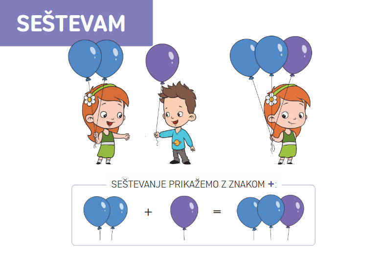 Od čutno nazornega materiala (kocke, figure, kozarčki) prek slikovne podpore do simbolnega zapisa – vsak učenec postopoma širi svoje znanje.