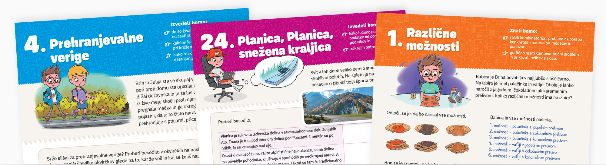 Širok nabor nalog ponuja pestre medpredmetne vsebine, ki jih spremlja grafično privlačna, zvočna ali video podpora.