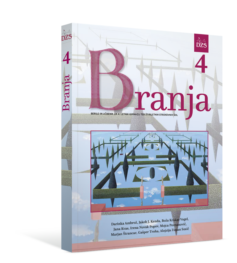 Branja 4 vsebujejo obvezna in izbirna literarna besedila iz obdobja sodobne slovenske književnosti. V novem razdelku S knjižne police so žanrska besedila iz spominske proze, biografije in potopisa.