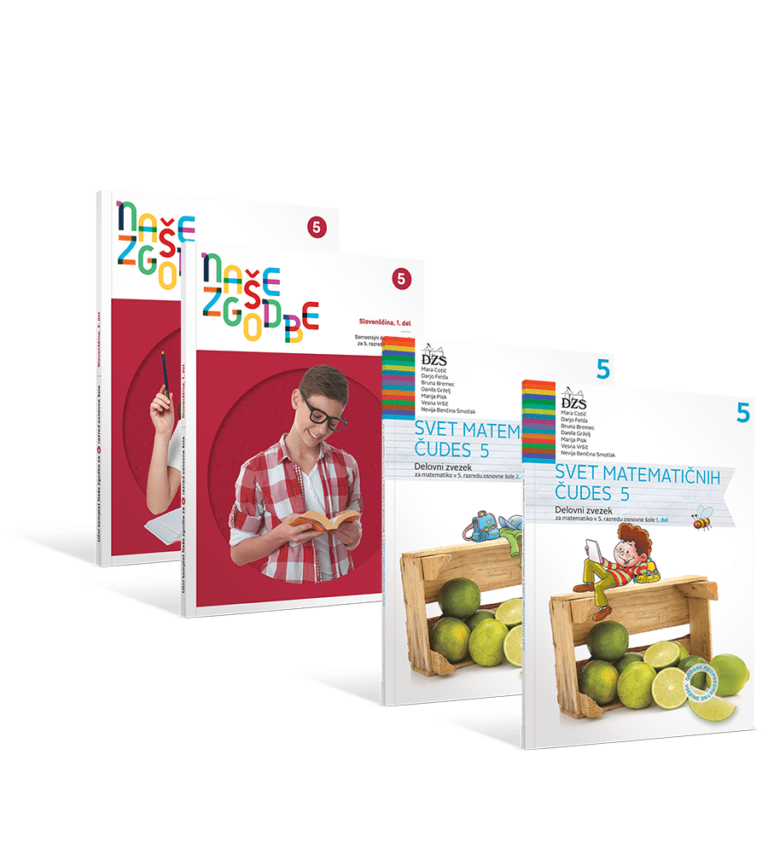 Svit 5 združuje Naše zgodbe 5, samostojni delovni zvezek za slovenščino in Svet matematičnih čudes 5 za matematiko z e-gradivi za peti razred. Motivacijske zgodbe junakov Naših zgodb povežejo jezikovno snov z realnimi okoliščinami in spodbujajo bralno motivacijo. Matematični del prinaša nazorne razlage, naloge različnih stopenj ter video postopke reševanja. Slovenščina razvija bralne strategije, tvorbo besedil in uporabo sodobnih komunikacijskih oblik. Sodobna didaktična zasnova in i-naloge učiteljem olajšajo spremljanje napredka ter diferenciacijo.