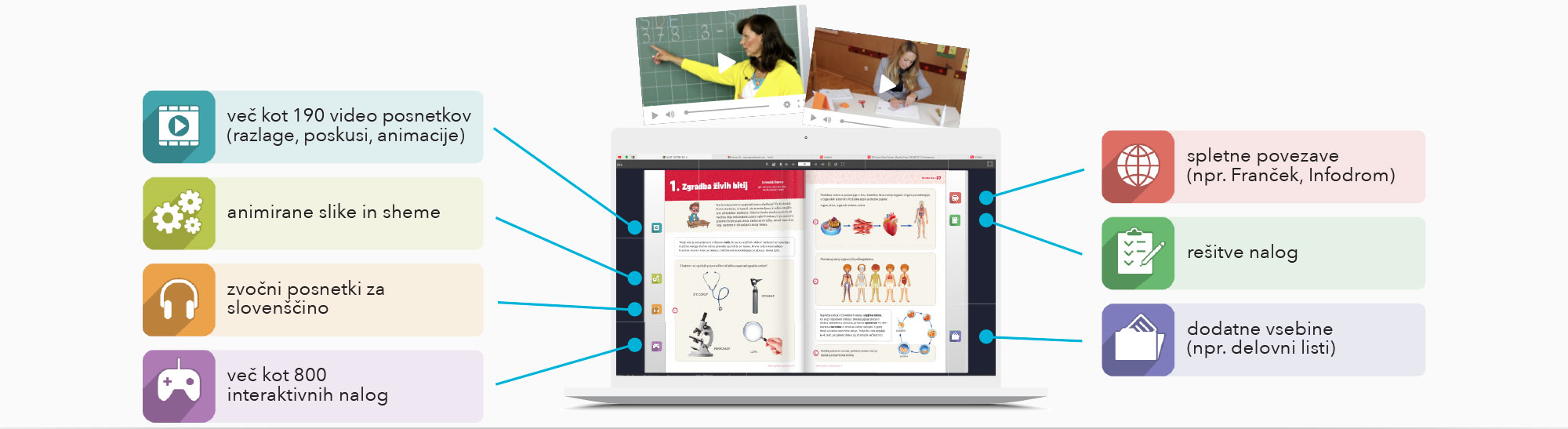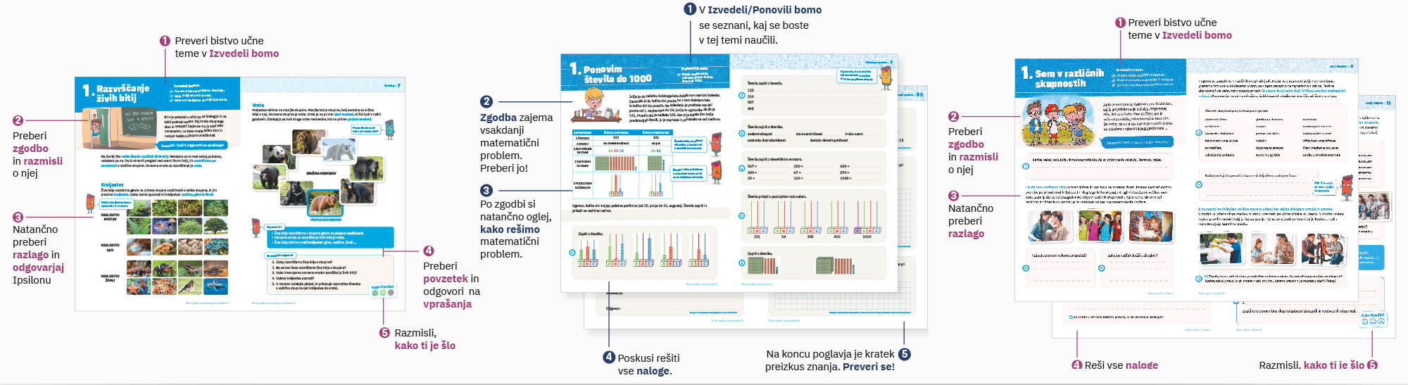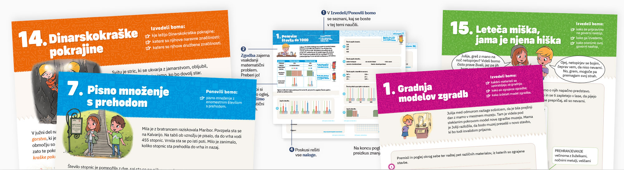 Komplet samostojnih delovnih zvezkov z e-gradivi za četrti razred za celovit pristop k učenju.