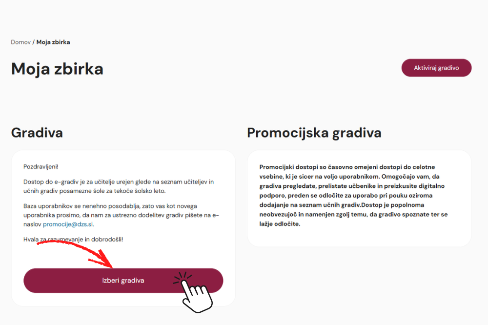 Dobrodošli na eVedež! Prijavite se in začnite z uporabo e-gradiv in podpore.